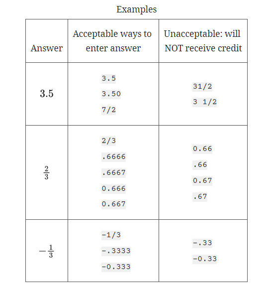 If your answer is a decimal that doesn't fit in the provided space, enter it by truncating or rounding at the fourth digit.